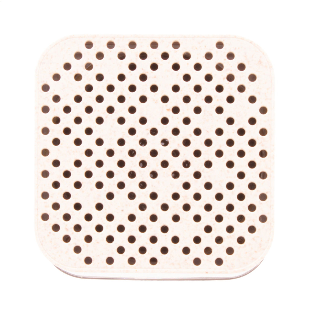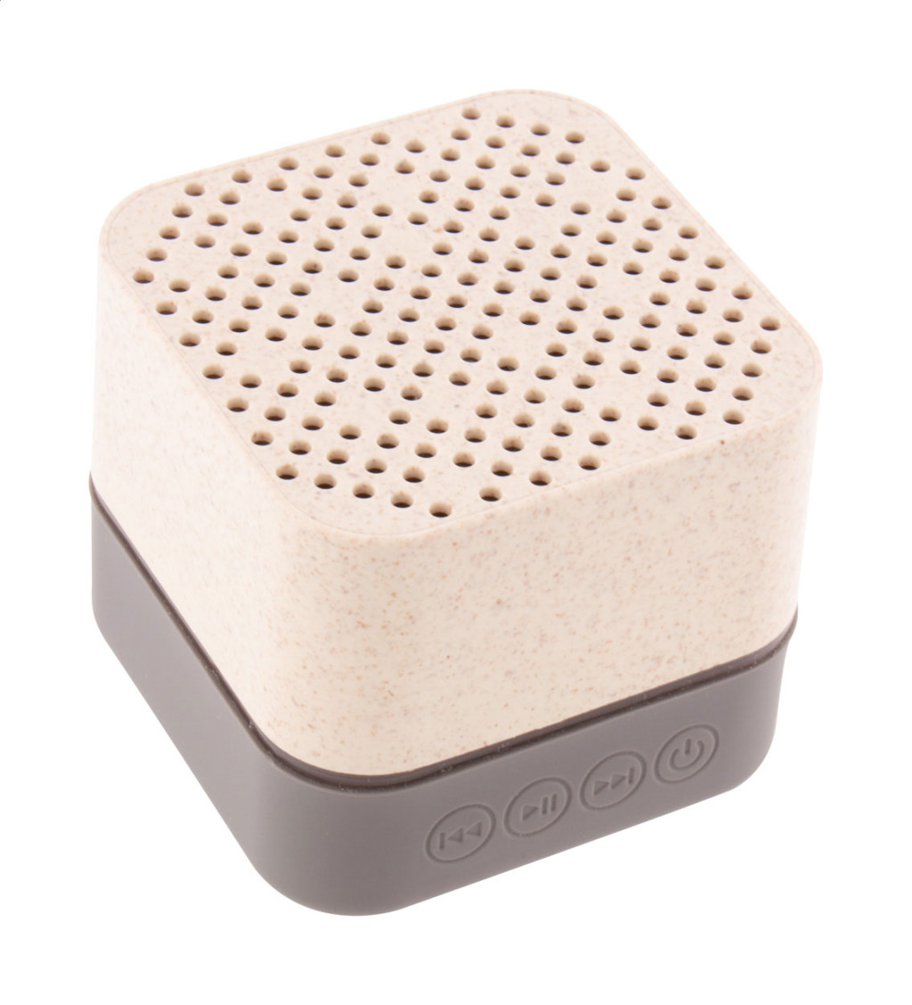 Vezeték nélküli hangszóró környezetbarát búzaszalma műanyag borítással, gumis alsó résszel, többszínű LED világítással és beépített újratölthető akkumulátorral. Micro SD lejátszóval és kihangosító funkcióval. USB töltőkábellel szállítjuk.