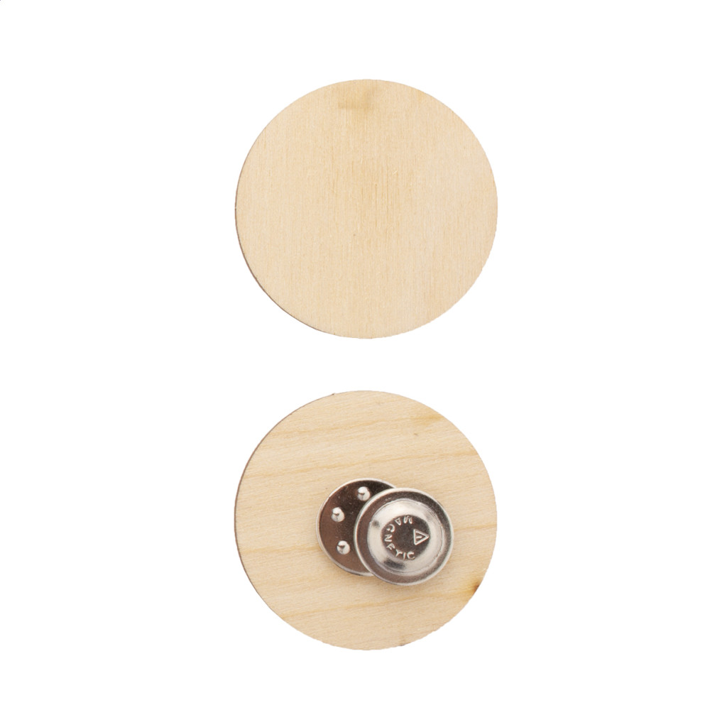 Egyediesíthető, rétegelt nyírfa lemez kitűző mágneses tűvel és full colour nyomtatással. Az ár tartalmazza az UV nyomtatás költségét. Minimális rendelési mennyiség: 100 db.
