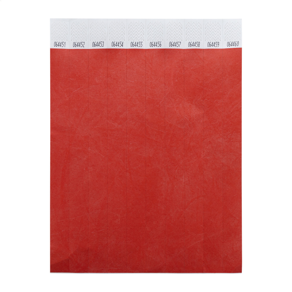 Egy lapnyi 19 mm széles tyvek karszalag (10 db) öntapadós biztonsági zárral és egyedi számozással.