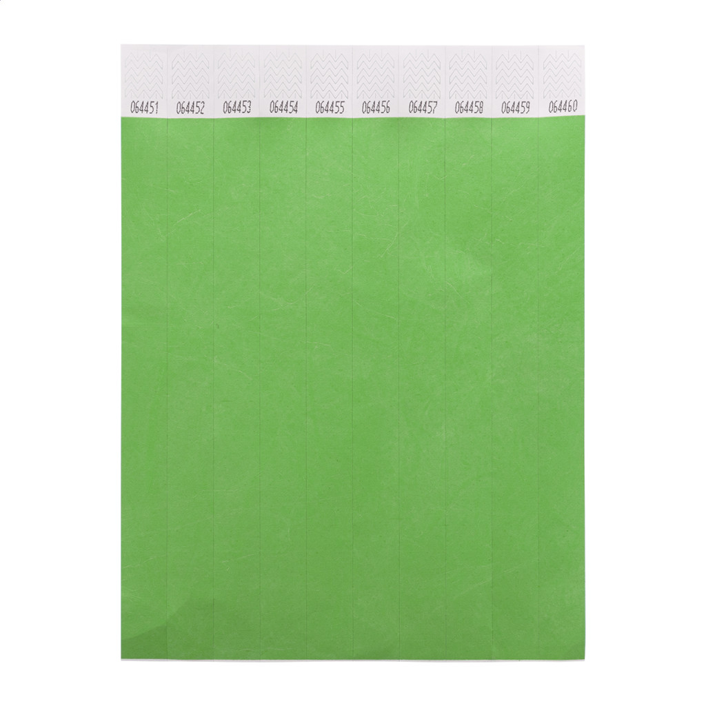 Egy lapnyi 19 mm széles tyvek karszalag (10 db) öntapadós biztonsági zárral és egyedi számozással.