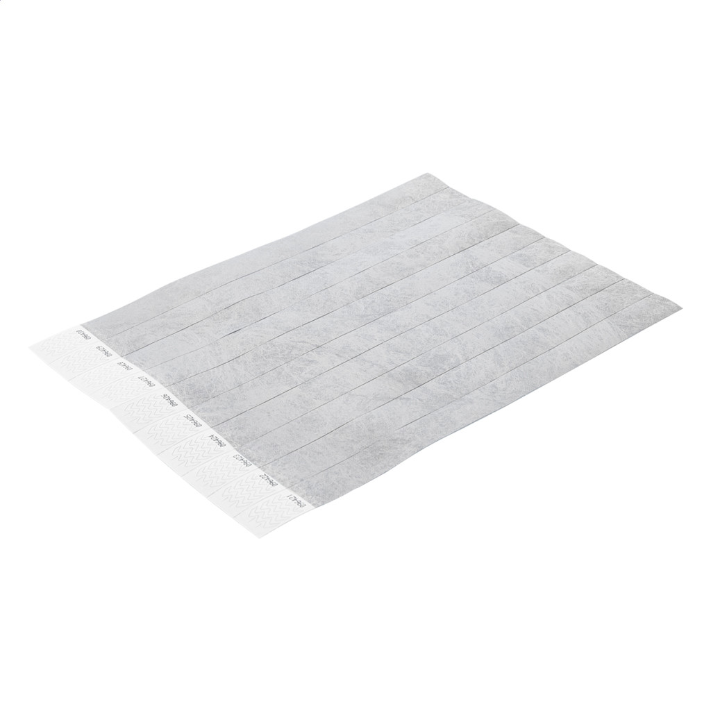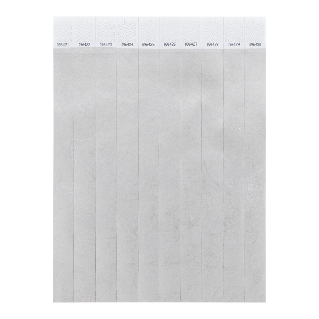 Egy lapnyi 19 mm széles tyvek karszalag (10 db) öntapadós biztonsági zárral és egyedi számozással.