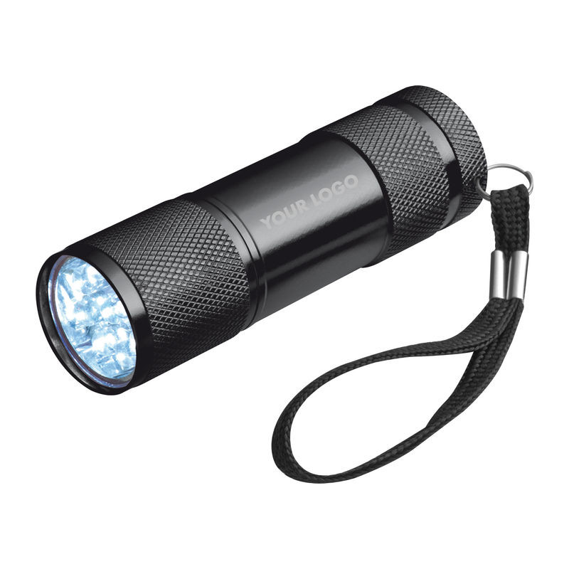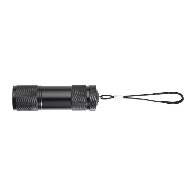 Alumínium elemlámpa, 9 erős fényű LED égővel, praktikus csuklópánttal. Elemekkel együtt dobozban szállítjuk.