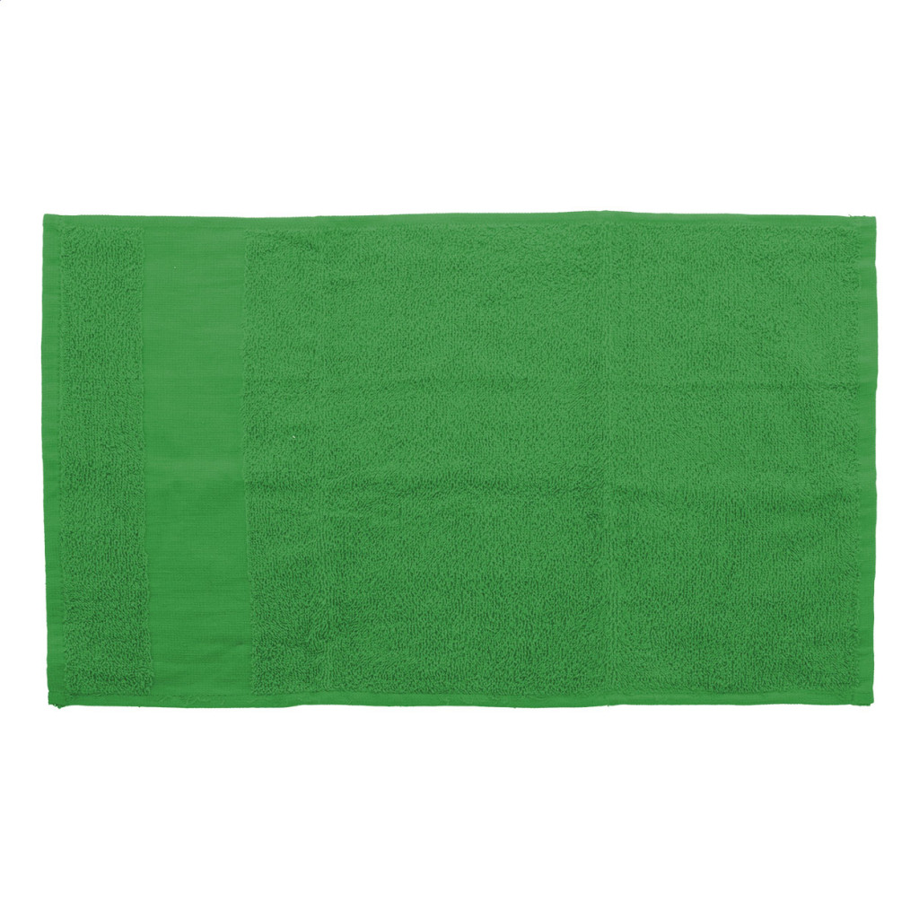 Pamut frottír vendégtörülköző akasztóval és nyomtatható szegéllyel. 100% pamut, 360 g/m².
