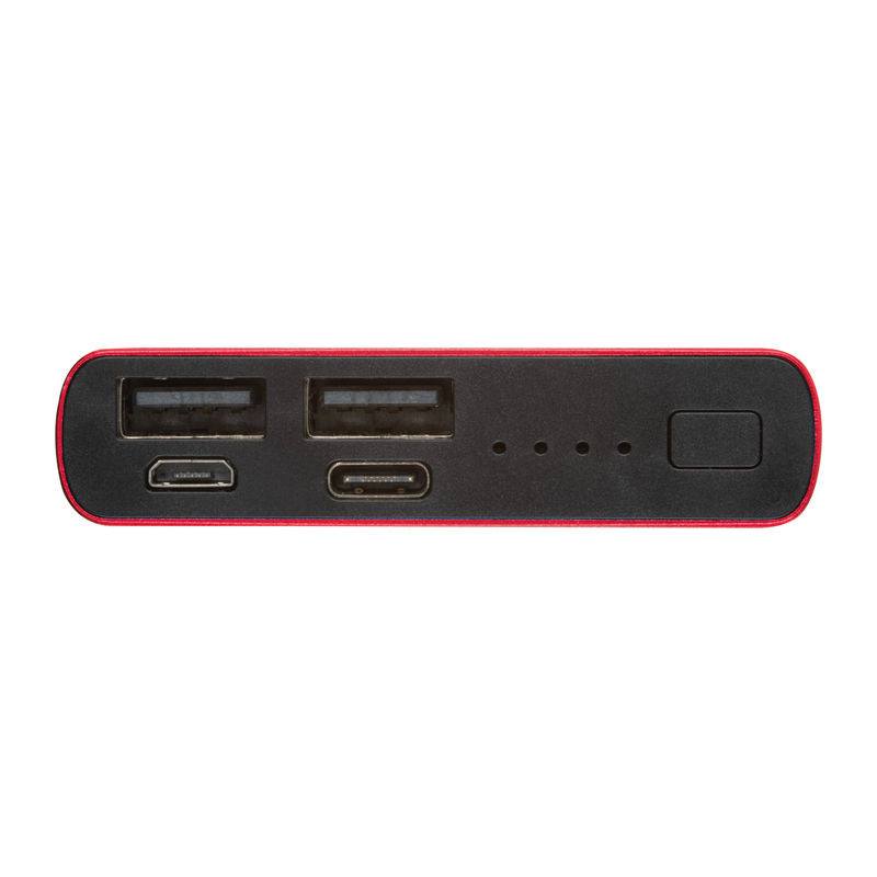 10.000 mAh kapacitású, újrahasznosított alumíniumból készült külső akkumulátor, LED töltöttség kijelzővel és USB-C töltőkábellel. Két USB , micro-USB és USB-C bemenettel rendelkezik.